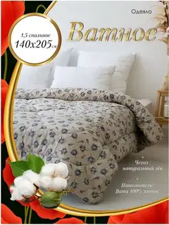 Одеяло 1.5 ватное ткань Лен Маки 140х205