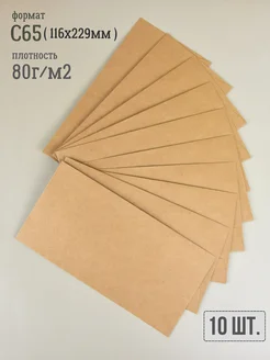 Крафт конверты C6, 10 шт, для открыток и приглашений