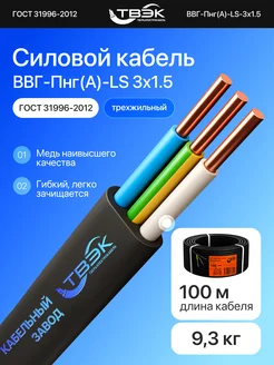 Силовой кабель ВВГ-Пнг(А)-LS 3 x 1.5 мм² 100 м медные жилы