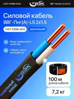 Силовой кабель ВВГ-Пнг(А)-LS 2 x 1.5 мм² 100 м медные жилы