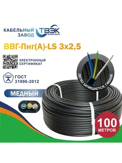 Силовой кабель ВВГ-Пнг(А)-LS 3 x 2.5 мм², 100 м ГОСТ
