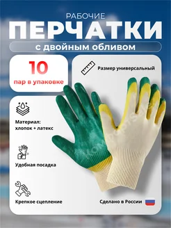 Перчатки рабочие с двойным обливом 10 пар
