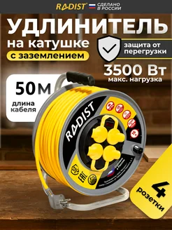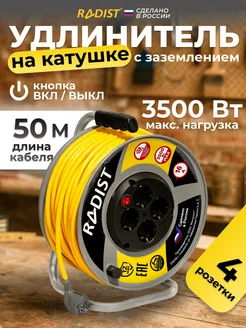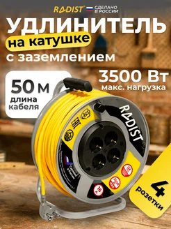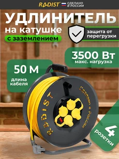 Удлинитель на катушке 50 м с заземлением и кнопкой