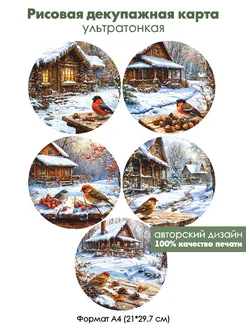 Декупажная рисовая карта Зимние птицы, формат А4