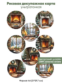 Декупажная рисовая карта Камин и свечи на окне, формат А4