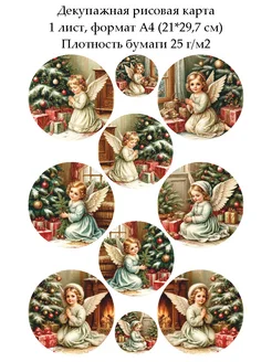 Декупажная рисовая карта Рождественский ангел, формат А4