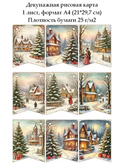Декупажная рисовая карта Флажки Винтажная зима, формат А4
