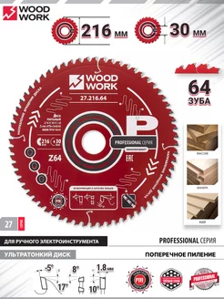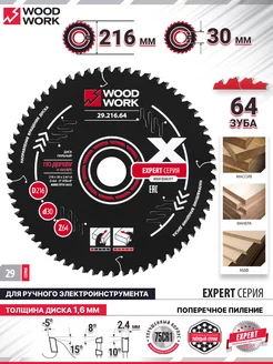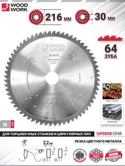 Диск пильный по дереву 216 мм на 30 мм, 64 зуба 29.216.64