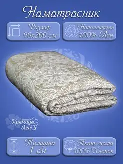 Наматрасник 90х200, на резинках, стёганный, хлопок, лен