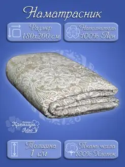 Наматрасник 180х200, на резинках, стёганный, хлопок, лен