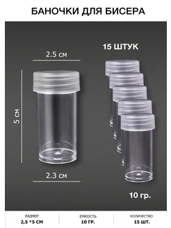 Баночки для бисера с крышкой. Набор 15 штук по 10 грамм