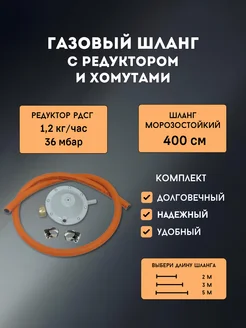 Шланг газовый и редуктор для баллона 4 м 9 мм