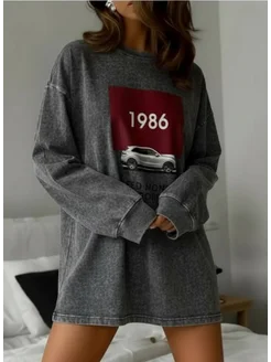 Лонгслив оверсайз с принтом с застиранным эффектом