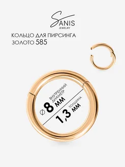 Золотой пирсинг кольцо кликер 8 мм
