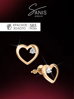 Серьги гвоздики золото 585 пробы Сердечки