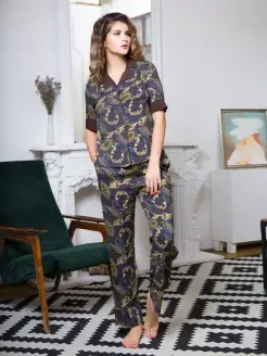 Пижама женская с брюками и блузой комплект, милая гладкая