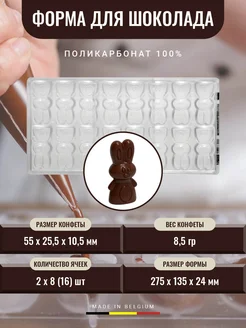 Поликарбонатная форма для шоколада пасхальный зайчик
