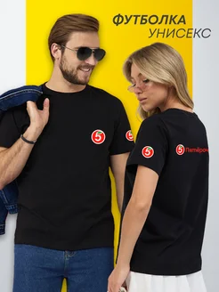 Футболка Пятёрочка с принтом на груди, спине и рукаве