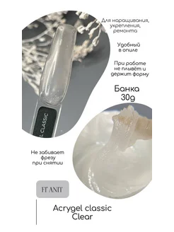 Акригель для наращивания ногтей прозрачный в банке, 30 г