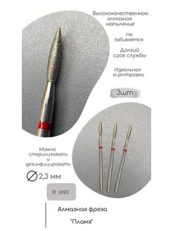 Алмазная фреза "Пламя" (2,3) красная, 3шт