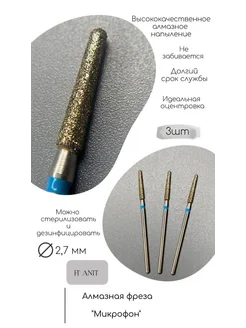 Алмазная фреза "Микрофон" (2,7) синяя, 3шт