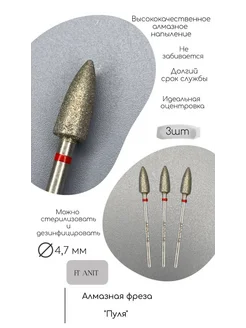 Алмазная фреза "Пуля" (4,7) красная, 3шт