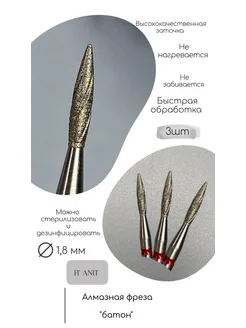 Алмазная фреза пламя "Батон" (1,8) красная 3шт
