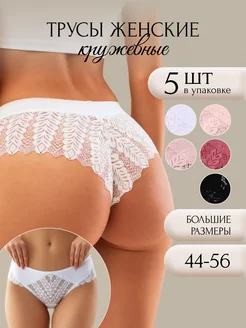 Трусы с высокой посадкой кружевные больших размеров набор 4