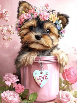 Алмазная мозаика щенок Йорк 30х40 без подрамника