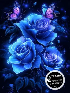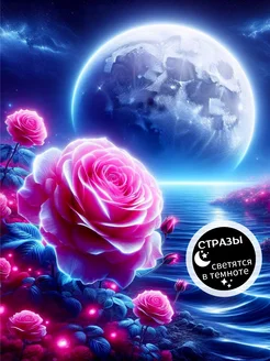 Светящаяся алмазная мозаика цветы розы 40х50 без подрамника