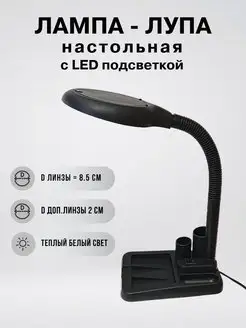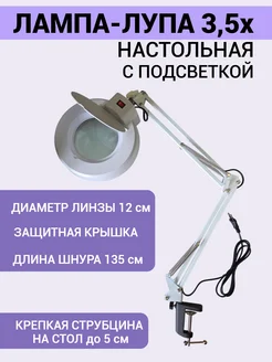 Лупа-лампа 3,5х на струбцине с подсветкой