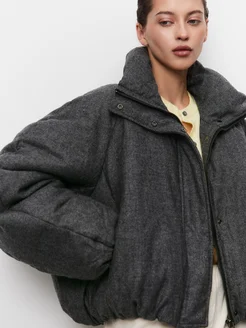 Куртка бомбер из шерсти демисезонная серая оверсайз