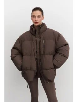 Куртка зимняя пуховик оверсайз коричневая с воротником