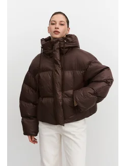 Куртка зимняя пуховик короткая коричневая с капюшоном