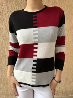 Свитер вязаный оверсайз джемпер нарядный тонкий хлопок 50%