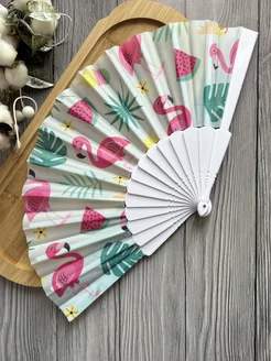 Веер с ярким рисунком фламинго