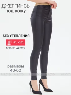Джеггинсы джинсы кожаные с высокой посадкой экокожа
