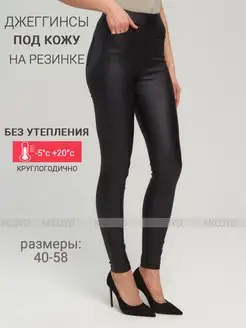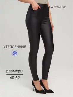 Джеггинсы кожаные скинни утепленные на резинке экокожа