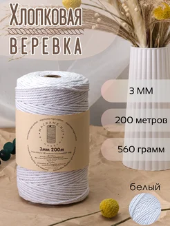 Хлопковый шнур для рукоделия и макраме 3 мм