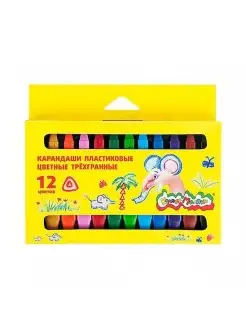 Карандаши восковые двусторонние трехгранные 12 цветов