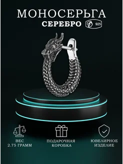 Моносерьга серебро 925 Дракон ширина 2.2 мм