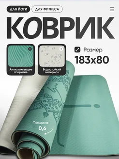 Коврик для йоги и фитнеса, с чехлом и ремнем, с разметкой