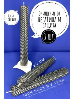 Свечи восковые, скрутки с 5 травами, черные Защита и Чистка