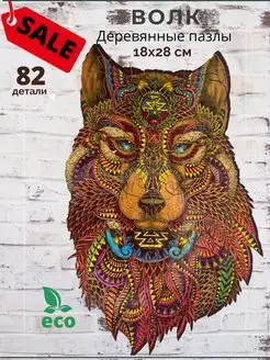Деревянные фигурные пазлы волк