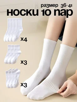 Носки белые разной длины 10 пар в рубчик