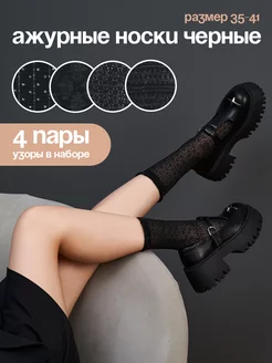 Черные носки ажурные с рюшами набор 4 пары