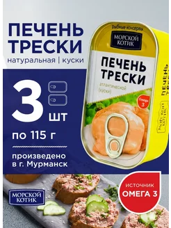 Печень трески натуральная, 3 шт