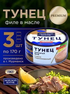 Тунец полосатый филе в масле, 3 шт