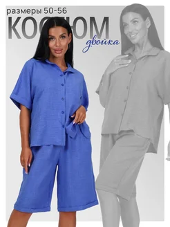 Костюм женский с шортами легкий с рубашкой жатка