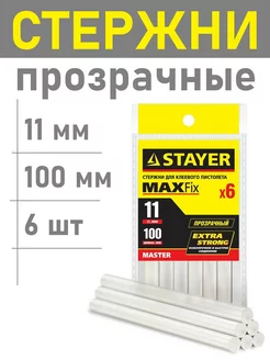 Клеевые стержни прозрачные 11 мм х 100 мм. 6 шт